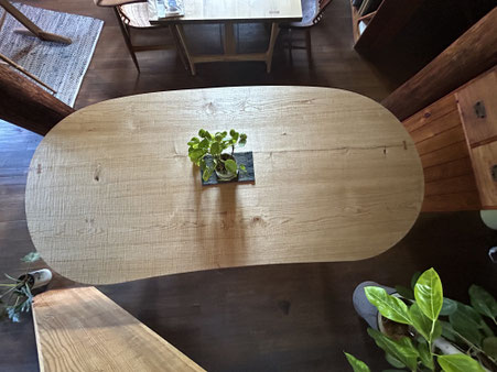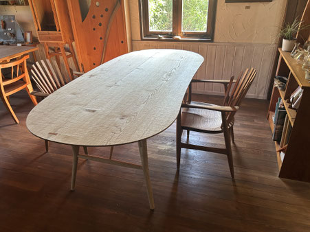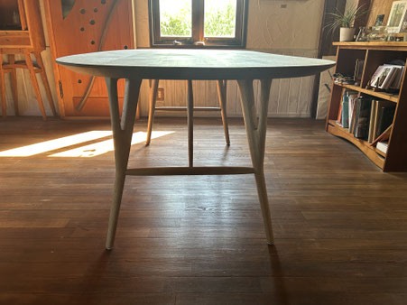 名古屋でお料理教室を主宰されるS様より定番のダイニングテーブルAの天板をそら豆型に変更し栗で製作。