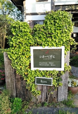 我が家の看板に這っているアイビーも生き生きとした緑色で元気に
